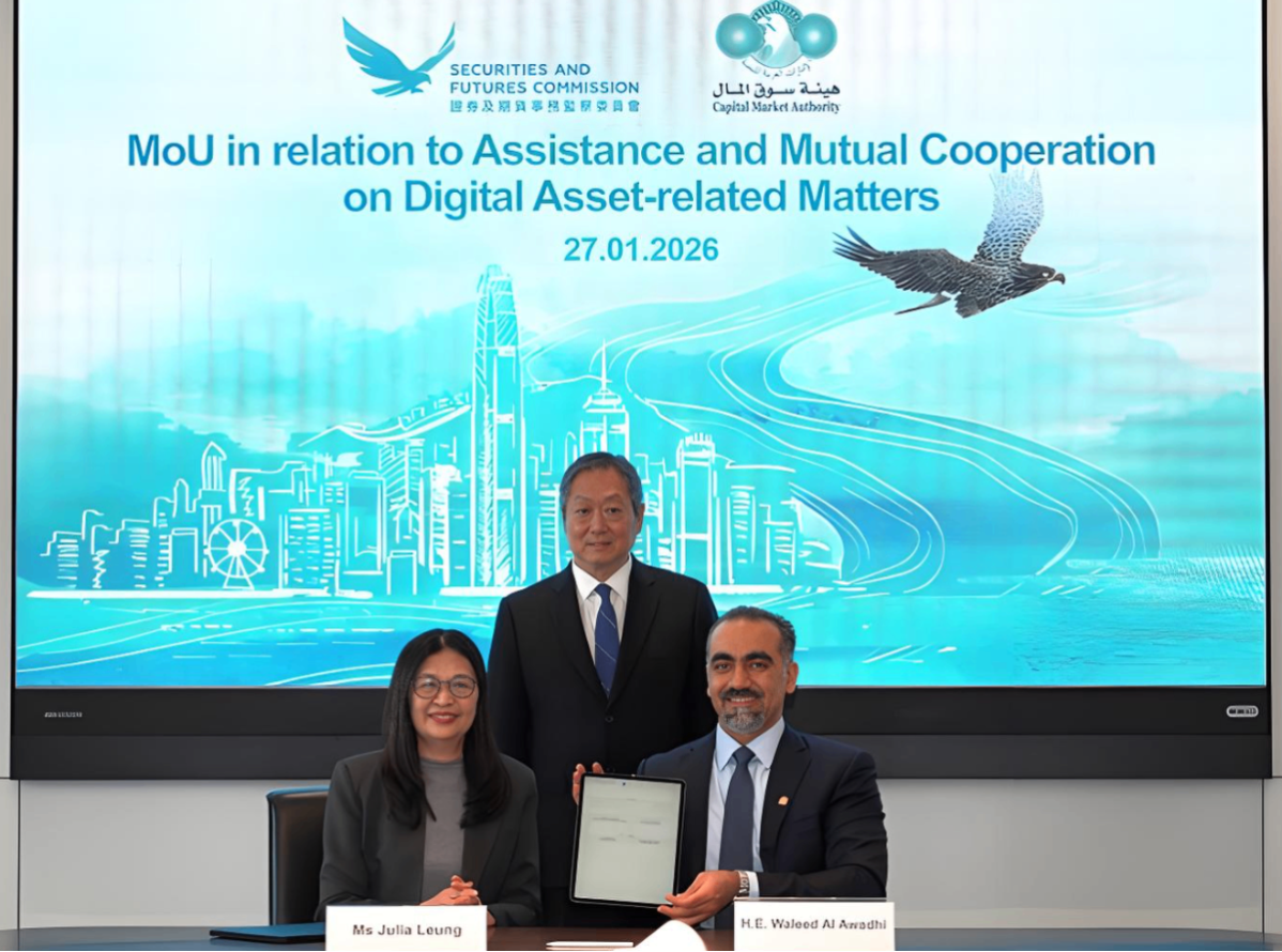 近日,香港证券及期货事务监察委员会(香港证监会)与阿拉伯联合酋长国资本市场管理局(Capital Market Authority of the UAE,前称阿联酋证券商品委员会)正式签署《谅解备忘录》,标志着双方在数字资产领域的跨境监管合作迈入实质性阶段。这是香港证监会与海外监管机构就受规管数字资产实体签署的首份双边协议,也是亚洲与中东金融枢纽在Web3.0时代深化监管协同的关键举措。
